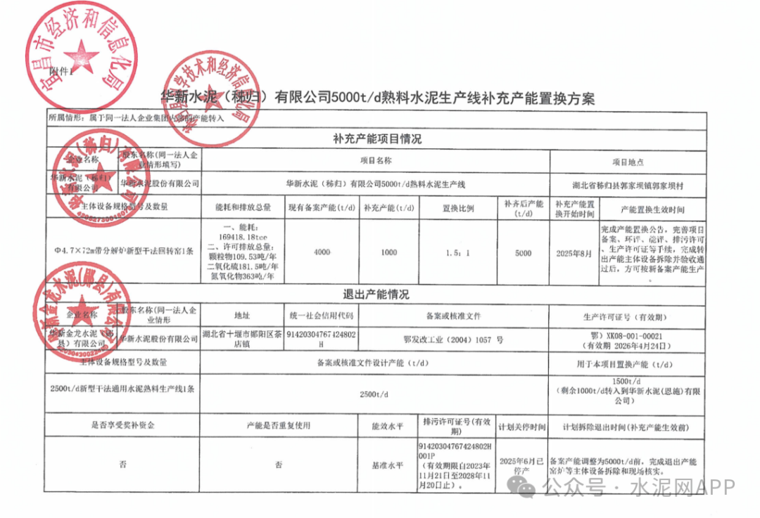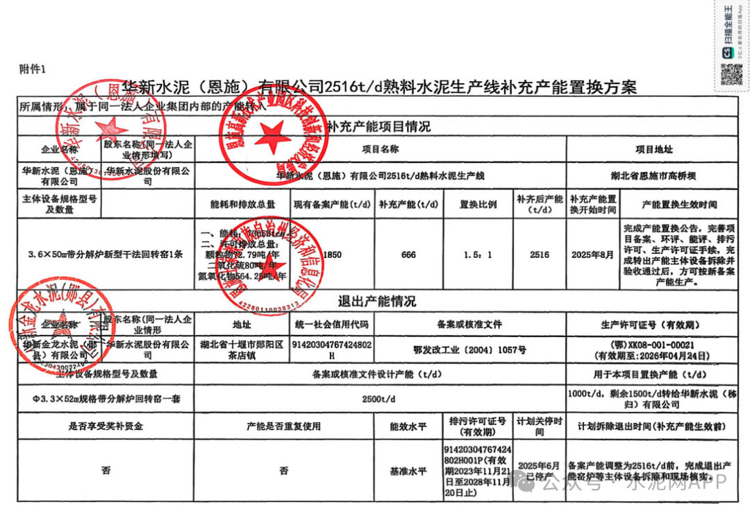 1月4日,湖北省經(jīng)信廳發(fā)布“關(guān)于華新水泥(秭歸)有限公司日產(chǎn)5000噸水泥熟料生產(chǎn)線項目補充產(chǎn)能置換方案的公示”、“關(guān)于華新水泥(恩施)有限公司日產(chǎn)2516噸水泥熟料生產(chǎn)線項目補充產(chǎn)能置換方案的公示”。置換方案顯示,華新金龍水泥(鄖縣)公司退出一條2500t/d生產(chǎn)線,其中1500t/d產(chǎn)能用于補充華新水泥(遞歸)公司一條4000t/d生產(chǎn)線,補齊后產(chǎn)能5000t/d,置換比例1.5:1;剩余1000t/d產(chǎn)能用于補充華新水泥(恩施)公司一條1850t/d生產(chǎn)線,補齊后產(chǎn)能2516t/d,置換比例1.5:1。